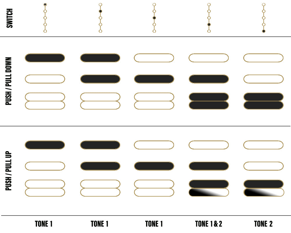 • Coil splitting: Requires compatible four conductor humbucker(s)